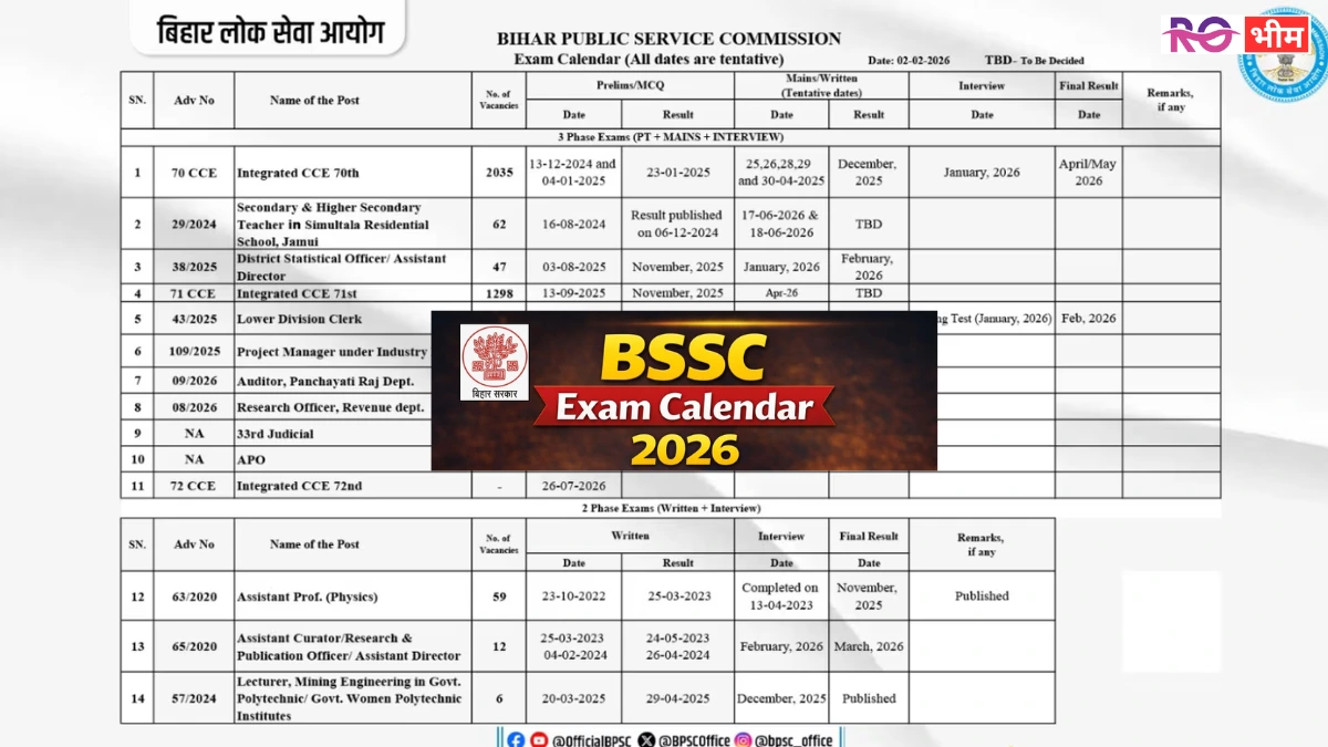 बीपीएससी 2026 परीक्षा शेड्यूल — मुख्य तिथियाँ