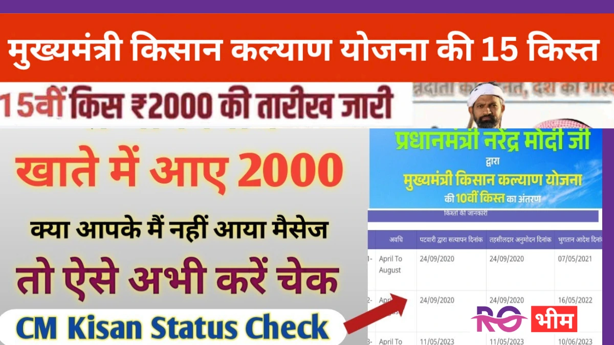 प्रश्न 1: मुख्यमंत्री किसान कल्याण योजना की 15वीं किस्त की आधिकारिक तारीख क्या है?