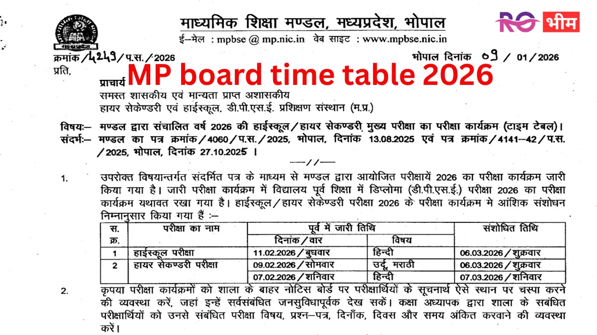 एमपी बोर्ड कक्षा 10वीं और 12वीं का टाइमटेबल जारी, यहाँ देखें नई तिथियां और जरूरी दिशानिर्देश | mp board time table 2026