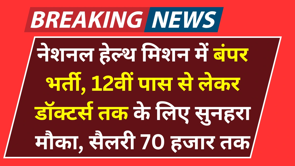 NHM Recruitment 2025: अगर आप मेडिकल सेक्टर में सरकारी नौकरी की तलाश कर रहे हैं, तो यह खबर आपके लिए बेहद खास हो सकती है। नेशनल हेल्थ मिशन (NHM), महाराष्ट्र ने विभिन्न पदों पर भर्ती के लिए अधिसूचना जारी की है। इस भर्ती प्रक्रिया के तहत कुल 94 पदों को भरा जाएगा। इच्छुक और योग्य उम्मीदवार आधिकारिक वेबसाइट पर जाकर आवेदन कर सकते हैं। इस भर्ती में 12वीं पास उम्मीदवारों से लेकर MBBS और अन्य विशेषज्ञता रखने वाले कैंडिडेट्स के लिए भी शानदार अवसर मौजूद हैं। इस भर्ती के तहत चयनित उम्मीदवारों को अधिकतम 70,000 रुपए प्रतिमाह तक का वेतन दिया जाएगा।